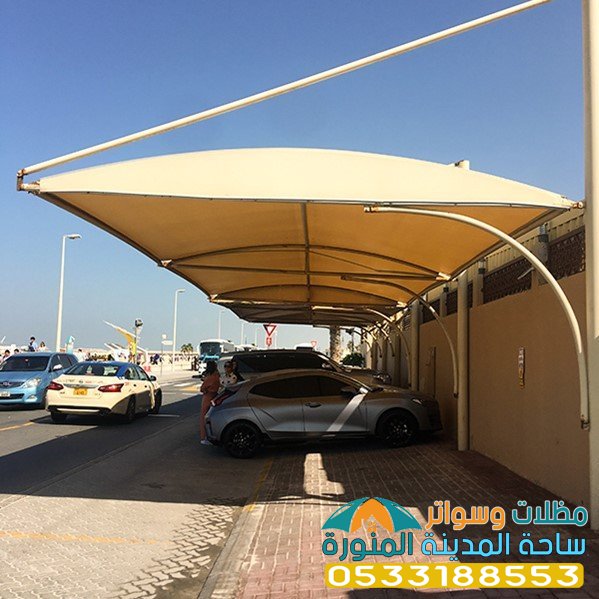 تتميز مظلات السيارات قماش في المدينة التي تنفذها مؤسسة ساحة المدينة بتصميمها العصري والجذاب.