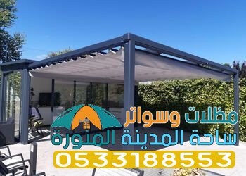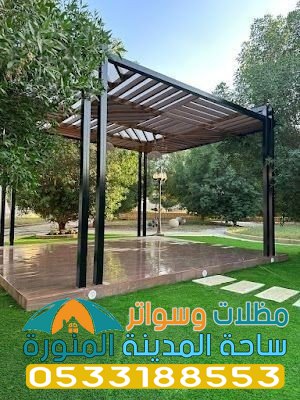 المواد المستخدمة في تركيب مظلات جلسات خارجية في المدينة: