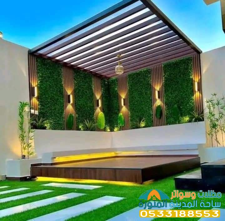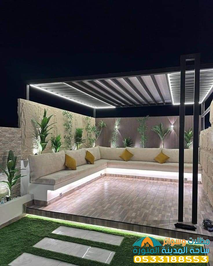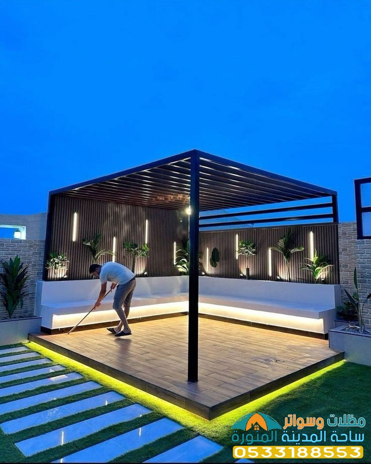 - يمكن إضافة إضاءة ديكورية على البرجولات لإضفاء مزيد من الجمال.